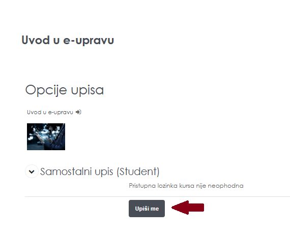 Nakon što odaberete ovu opciju, otvoriće Vam se ekran kao na slici ispod. Kliknite na tipku "Upiši me" da da biste se upisali na kurs.