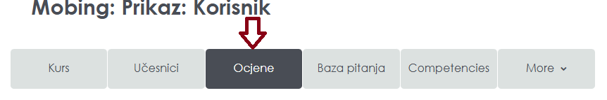 Da biste pregledali ocjene na kursu kliknite na opciju "Ocjene" u bloku "Administracija".